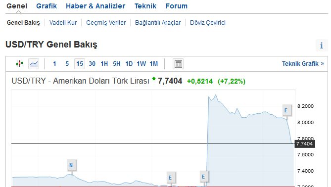 Dolar/TL, Asya piyasalarının açılışında ilk işlemlerde 8.35'e kadar Hazine ve Maliye Bakanlığı'ndan gelen açıklama sonrası 8 TL'nin altına gerileyerek 7,70 TL seviyelerine kadar çekildi. Gece saatlerinde 473 TL'ye çıkan gram altın ise sabah saatlerinde 436 TL seviyesine düştü.