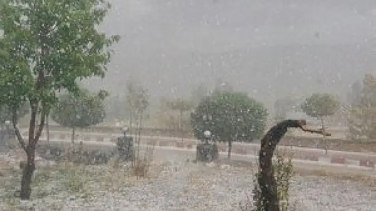 Bayburt'un Demirözü ilçesinde öğle saatlerinde bastıran dolu ilçeyi beyaza bürüdü.