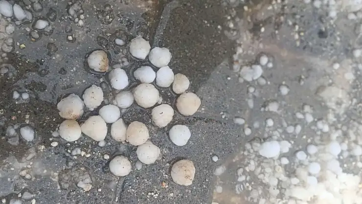 Mardin'in Mazıdağı ilçesinde ceviz büyüklüğünde yağan dolu, tarım arazileri ile meyve ağaçlarına zarar verdi. Yağışın ardından oluşan hortum, cep telefonu kamerasıyla kaydedildi.
