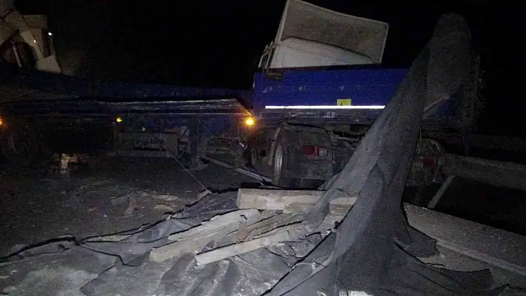 Domates yüklü tır, mermer yüklü tırla çarpıştı 4 kişi yaralandı
