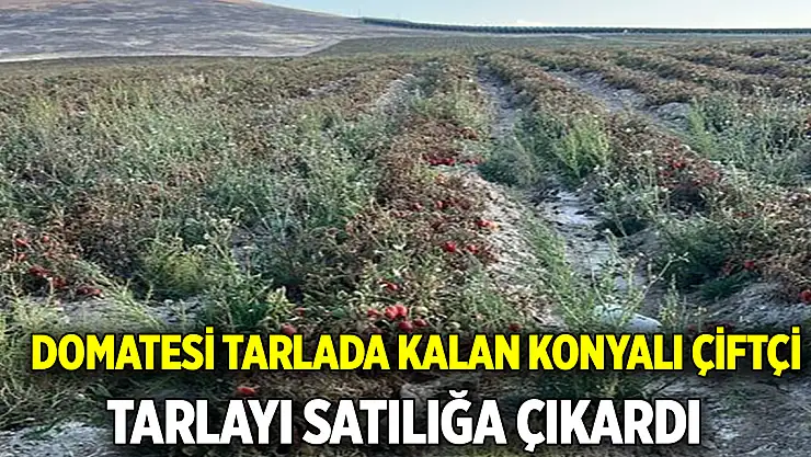 Konya'da masrafları karşılamadığı için yetiştirdiği domatesi tarlasından toplatamayan çiftçi, tarlasını olduğu gibi satılığa çıkardı.