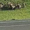 Yol kenarına kadar gelen ve daha sonra vatandaşları fark eden domuz sürüsü bölgeden hızla uzaklaşarak gözlerden kayboldu.