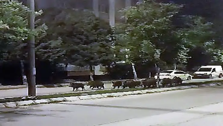Denizli'nin Merkezefendi ilçesinde akşam gezintisine çıkan domuz sürüsü, vatandaşlar tarafından cep telefonuyla görüntülendi.