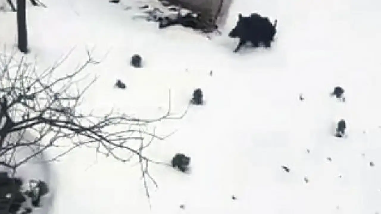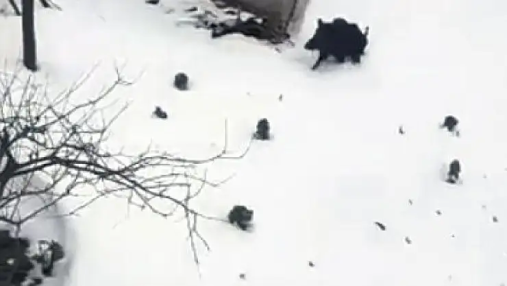 Giresun'un Piraziz ilçesinde yolda yürürken bir anda karşısına domuz çıkan genç, kendini yol kenarındaki otomobilin üzerine attı. Domuz koşarak uzaklaşırken, o anlar cep telefonu ile görüntülendi.