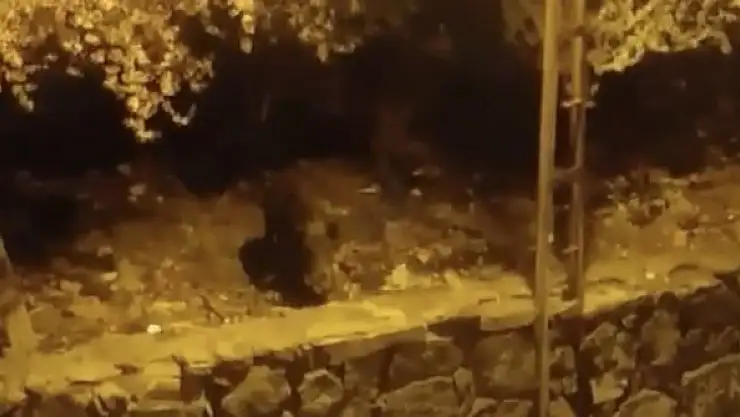 İstanbul Sarıyer'de ormanlık alanda yiyecek bulamayınca şehir merkezine kadar inen domuz sürüsü cep telefonu ile görüntülendi.