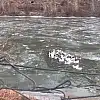 Erzincan'ın Çayırlı ilçesinde yüzeyi belirli aralıklarla donan Karasu nehrinde mahsur kalan 30'a yakın kazı kurtarmak için AFAD ekipleri çalışma başlattı.