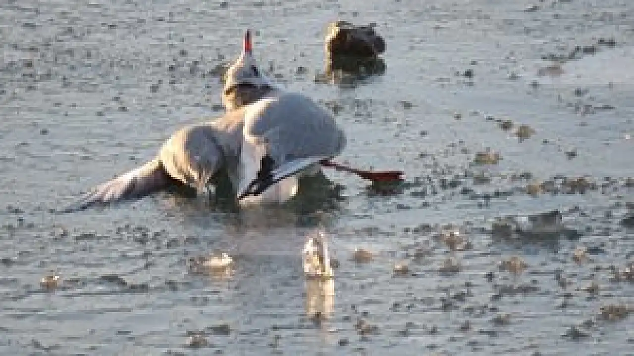 Donan gölde sıkışan martı kurtarıldı
