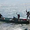 Suğla Gölü'nde oluşan buz tabakası nedeniyle balıkçılar zor günler geçiriyor. Buz kalınlığının yer yer 15 santimetreye ulaştığı gölde, geçimini balıkçılıkla sağlayanlar, yaklaşık 20 gündür avlanamıyor.