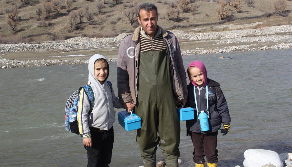 Baba Yar, Sason Çayı üzerinde bulunan köprünün kendilerine yaklaşık 3 kilometre uzaklıkta bulunması nedeniyle, çocukları 1'inci sınıf öğrencisi 6 yaşındaki Cuma ile 3'üncü sınıf öğrencisi 8 yaşındaki Ali'yi okula yetişebilmeleri için sırtlayarak, çayın üzerinden karşıya geçiriyor.