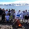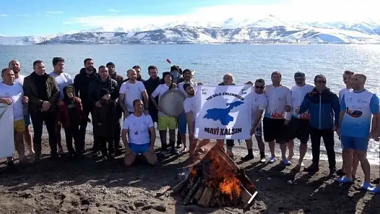 Bitlis'in Tatvan ilçesinde bir araya gelen Van Gölü Aktivistleri, eksi 7 derece olarak ölçülen hava sıcaklığına rağmen Van Gölü'nde yüzdüler.