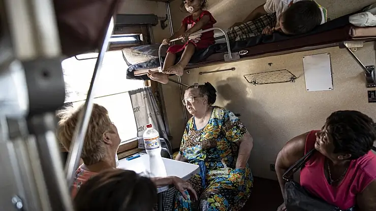Savaşın başlamasından bu yana çatışmaların yaşandığı ve saldırı tehlikesinin sürdüğü yerleşimlerden insanları daha güvenli bölgelere taşıyan trenle her gün binlerce kişi yaşadığı evlerden uzaklara, belirsiz süreyle ayrılmak zorunda kalıyor.