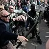 Eylem sırasında Rusya yanlısı gruptan yüzleri maskeli bazı kişiler de korna çalarak geçen araçlara taş ve demir çubuklarla saldırdı. Bazı araçlarda maddi hasar meydana gelirken, olayı görüntüleyen kimi gazeteciler de tartaklandı.