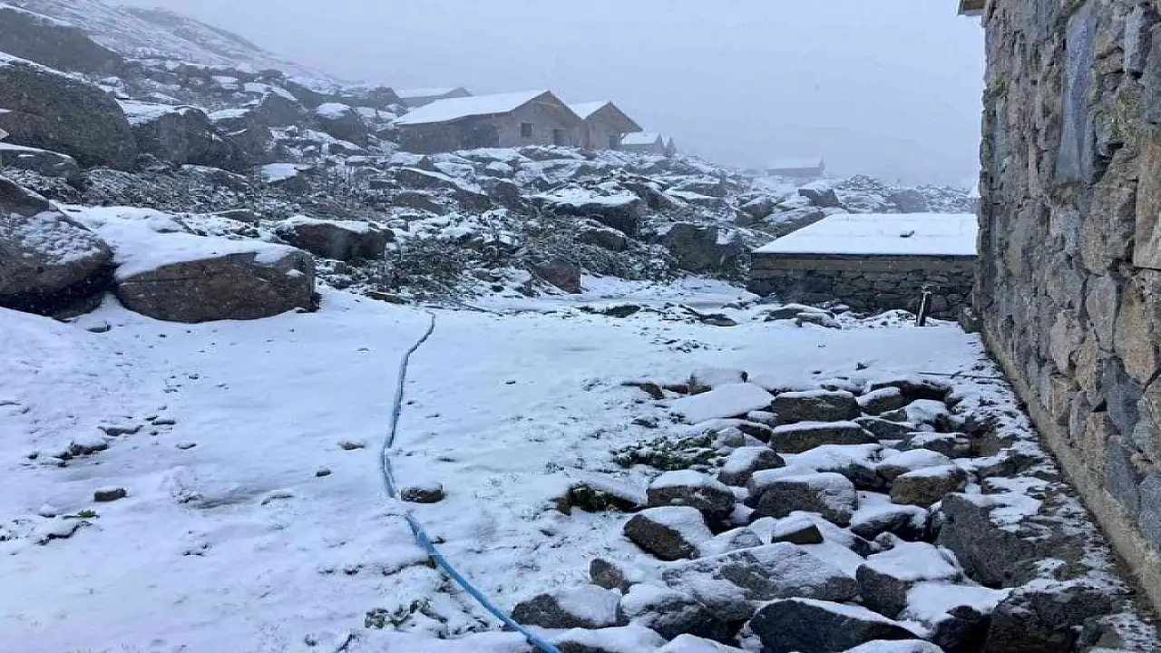 Karçal Dağı’nın eteklerinde, 2450 metre yükseklikteki son yayla olan Beyazsu Yaylasına mevsimin ilk karı düştü.