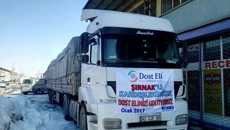 Konya Dost Eli Yardımlaşma ve Dayanışma Derneği, Şırnak'taki terör mağdurlarına ulaştırmak üzere bir tır malzemeyi Şırnak Nuh Eğitim Derneği'ne gönderdi.