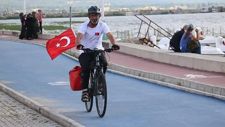 Dostlarına vefa göstermek için İzmir'de başlattığı tur kapsamında Türk bayrağı taktığı bisikletiyle pedal çeviren seyyar satıcı Orhan Kotluk, Konya'nın Beyşehir ilçesine ulaştı.