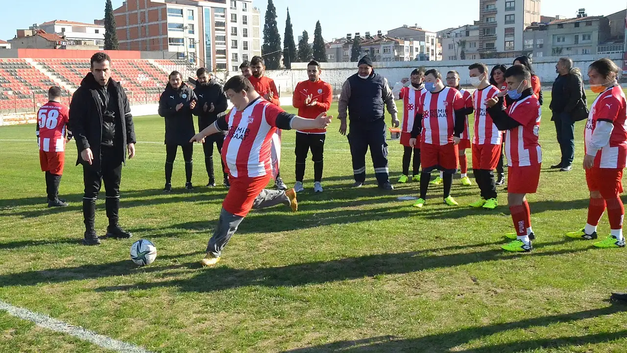 Manisa'nın Turgutlu ilçesinde down sendromlu öğrenciler yeşil sahaya adım attı.