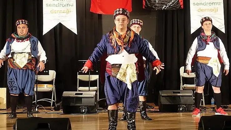 İzmir'de düzenlenen etkinlikte down sendromlular şarkı söyledi, halk oyunları gösterisi sundu.