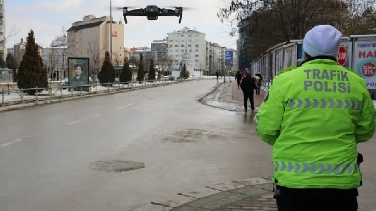 Drone destekli trafik denetiminde kış lastiği de kontrol edildi
