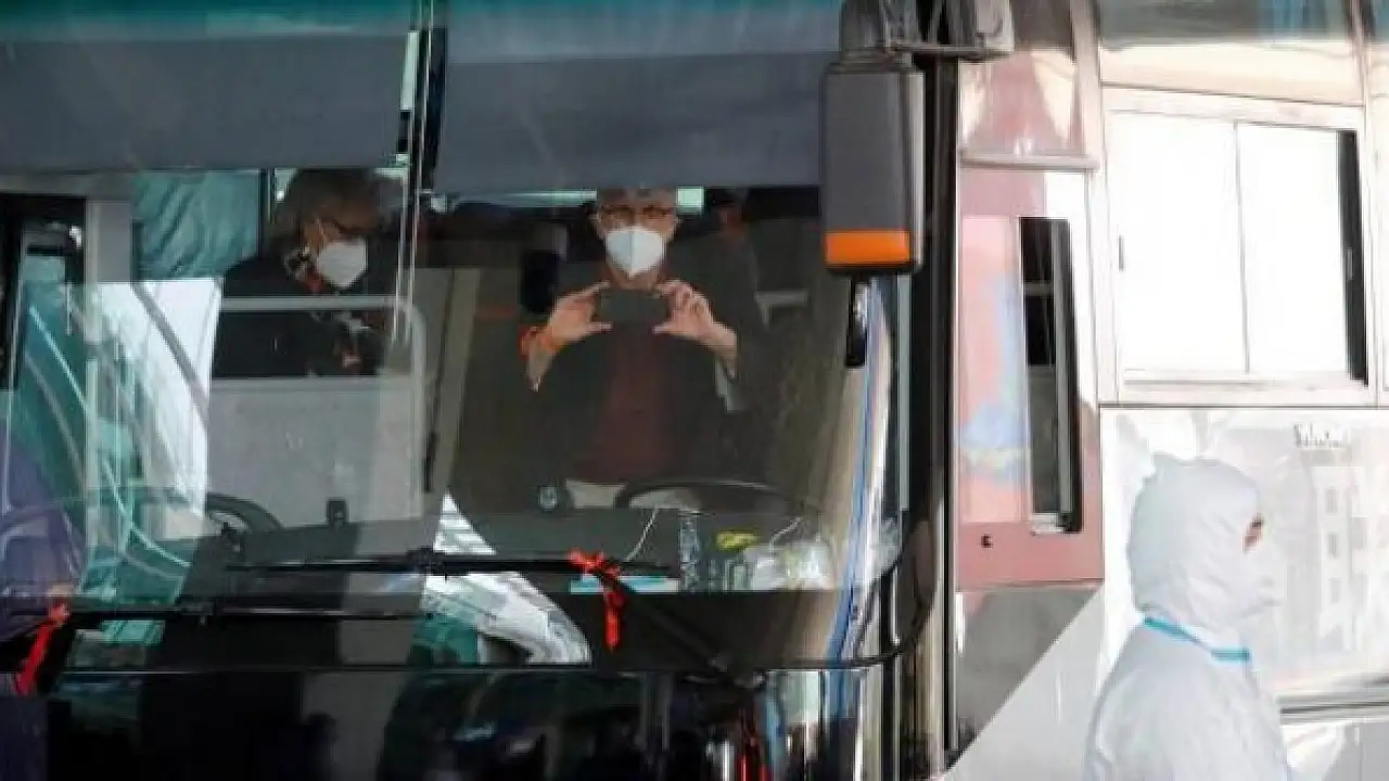 Çin'e gelmelerinin ardından 14 günlük karantinaya alınan ekip, öğleden sonra Wuhan'daki otellerinden dışarı çıkıp bir otobüse binerken görüldü.