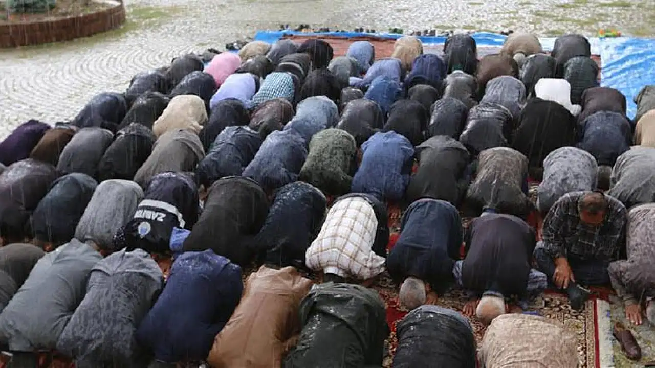 Konya'nın Halkapınar ilçesinde duası yapıldığı sırada yağmur yağdı.