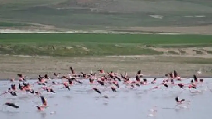 Kışı güneydeki ülkelerde geçiren flamingolar, her yıl olduğu gibi havaların ısınmasıyla birlikte gruplar halinde Tuz Gölü'ne gelmeye başladı.