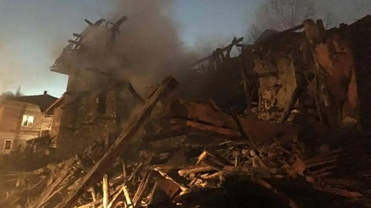 Edinilen bilgiye göre, Mustafa Şahin’e ait alt katı ağır üst katı da ev olarak kullanılan ahşap evde, soba üzerindeki düdüklü tencerenin patlaması sonucu sobanın devrilmesiyle yangın çıktı. Yangın kısa sürede kısa sürede büyüdü. Olay yerine 8 ayrı itfaiye aracı sevk edilirken, ağırda bulunan 6 büyükbaş hayvan, yanmaktan sonra anda vatandaşlar tarafından kurtarıldı.