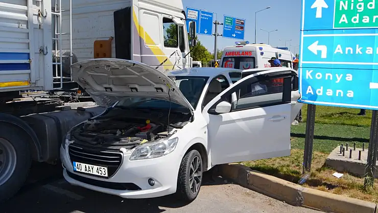 Aksaray'da TIR'la çarpışan otomobilin içindeki aynı aileden 4 kişi yaralandı. Fransa'dan memleketlerine gelen ailenin bir yakınlarının düğünü için alışveriş yaptıktan sonra evlerine döndükleri öğrenildi.Kaza, saat 11.30 sıralarında Aksaray-Ankara kara yolu Nevşehir Kavşağı'nda meydana geldi. Fransa'dan memleketleri Aksaray'a izne gelen Asıl Selvici (42 ) yönetimindeki 40 AAY 453 plakalı otomobil, kavşakta Servet Özay'ın (34) kullandığı 68 ABS 883 plakalı TIR'la çarpıştı. Kazada otomobil sürücüsü Asıl Selvici, eşi Meryemana Selvici (44), çocukları Alper Selvici (17) ve Aylin Selvici (14 ) yaralandı. TIR şoförü Özay da kazadan yara almadan kurtuldu. Araç içinde sıkışan Meryemana Selvici ve kızı Aylin Selvici, ihbar üzerine çağrılan itfaiye ekiplerinin müdahalesiyle sıkıştıkları yerden kurtarıldı. Yaralı 4 kişi ambulanslarla Aksaray Eğitim ve Araştırma Hastanesi'ne kaldırıldı. Tedaviye alınan yaralıların sağlık durumlarının iyi olduğu belirtildi. Selvici ailesinin, kent merkezindeki düğün alışverişlerinin ardından Ortaköy ilçesine dönmek üzere oldukları öğrenildi. Kazayı anlatan Alper Selvici, "Düğün için alışveriş yapıp dönerken bize TIR çarptı.'" dedi. Soruşturma sürüyor.