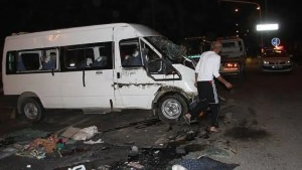Alınan bilgiye göre, Elazığ-Bingöl karayolunun 10. kilometresindeki Yazıkonak beldesi girişinde, Zülküf Ayaz yönetimindeki 12 D 0012 plakalı minibüs ile Süleyman Aslan'ın kullandığı 34 VT 0069 plakalı minibüs çarpıştı. 12 D 0012 plakalı minibüs, çarpışmanın etkisiyle devrildi.