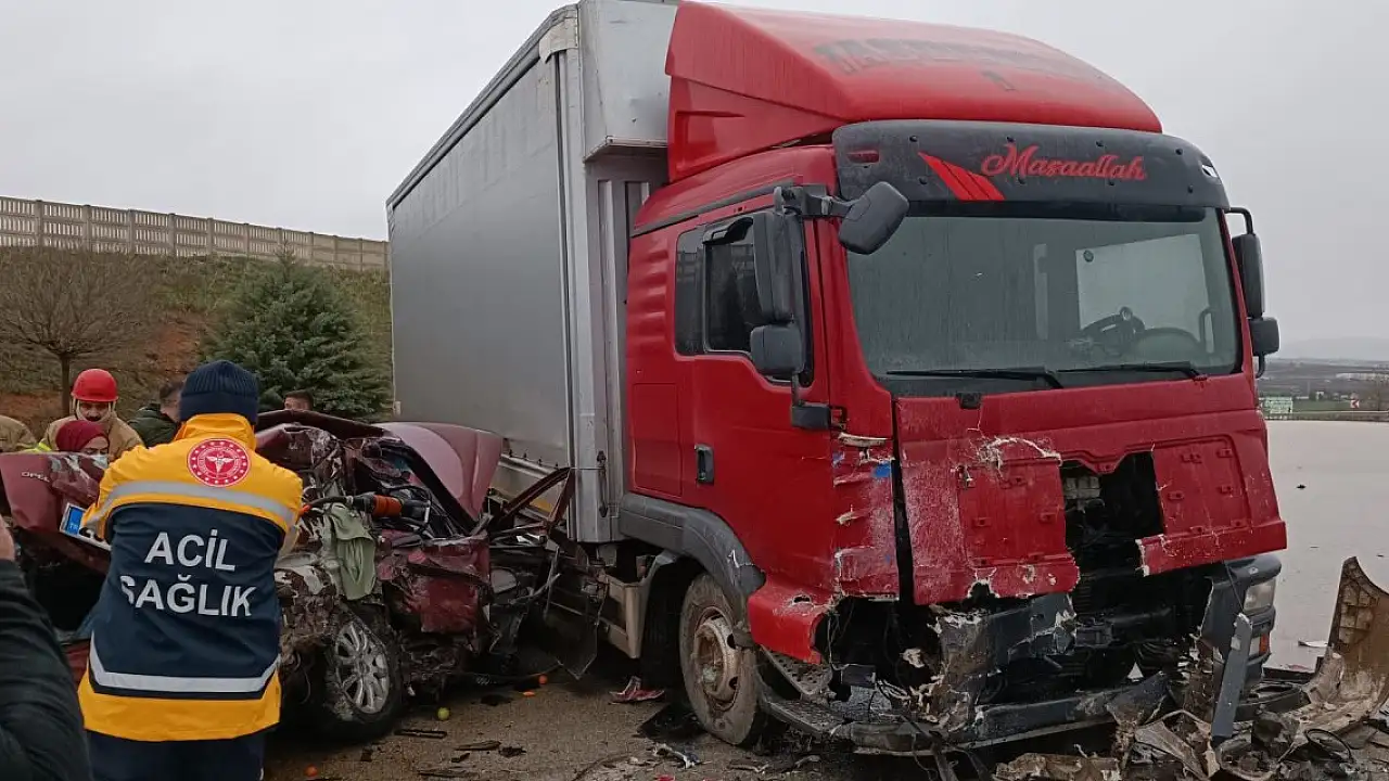 BURSA'daki akrabalarının düğününe katılmak için Çanakkale'den yola çıkan 6 kişilik ailenin içinde bulunduğu otomobil, sürücüsünün direksiyon hakimiyetini kaybetmesi sonucu karşı yönden gelen kamyonla çarpıştı.