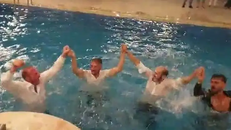 Düğünde çılgın eğlence, havuzda horon teptiler