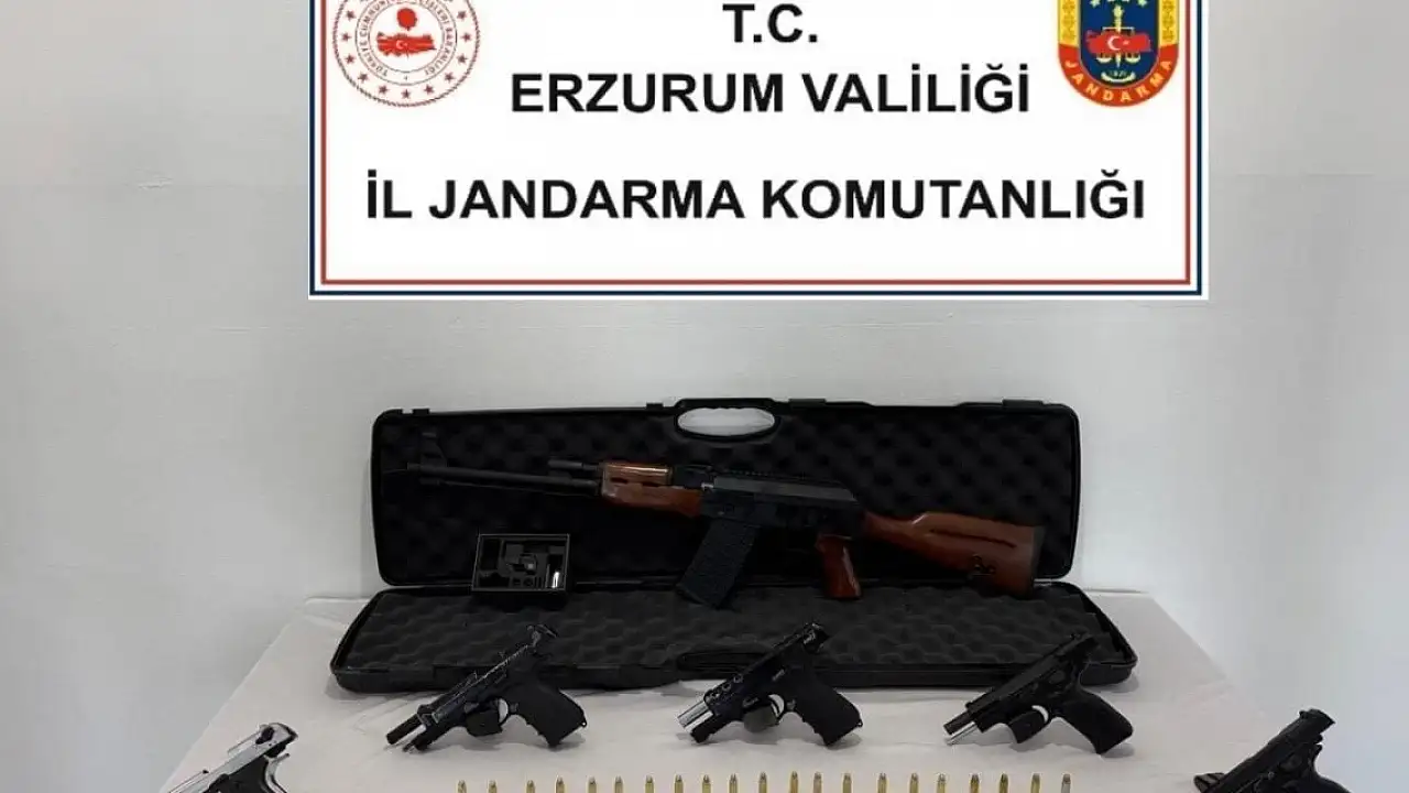 Erzurum İl Jandarma Komutanlığı Kaçakçılık ve Organize Suçlarla Mücadele Şube Müdürlüğü koordinesinde Erzurum'un Horasan ilçesinde bir düğün sırasında havaya ateş açılması olayıyla ilgili olarak başlatılan soruşturma kapsamında gerçekleştirilen operasyonda; 6 adet ruhsatsız tabanca, 1 adet ruhsatsız av tüfeği, 7 adet tabanca şarjörü, 3 adet av tüfeği şarjörü, 68 adet 9 mm fişek ve 1 adet lazer işaretleyici ele geçirildi.