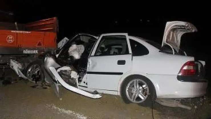 Alınan bilgiye göre, Alaca ilçesine bağlı Kalecikkaya köyündeki bir düğünden dönen ailenin içinde bulunduğu Mehmet Karslı (61) idaresindeki 19 SK 237 plakalı otomobil, Sungurlu-Alaca karayolu 11. kilometrede, Bektaş Kaplan'ın (21) kullandığı 19 LN 460 plakalı traktöre arkadan çarptı.
