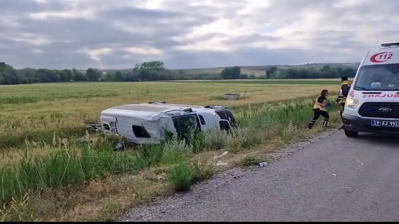 Çorum'un Alaca ilçesinde, düğünden dönenleri taşıyan minibüsün şarampole devrildiği kazada 1'i ağır, 17 kişi yaralandı.