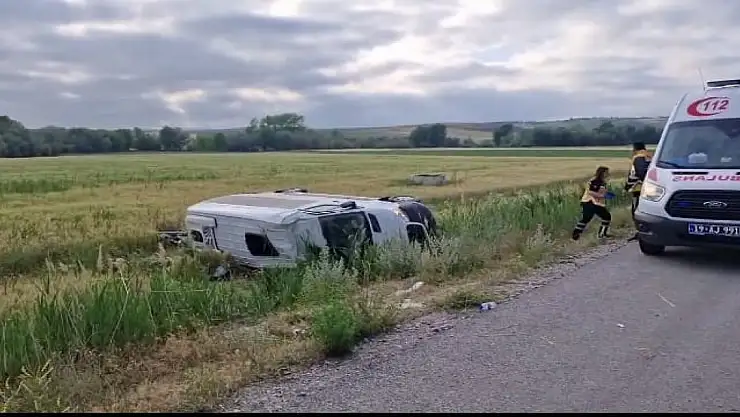 Düğünden dönenleri taşıyan minibüs şarampole devrildi: 1'i ağır, 17 yaralı