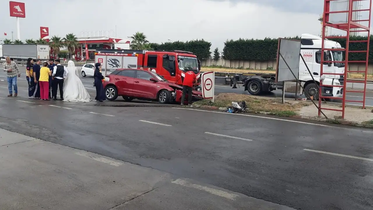 Kocaeli'de fotoğraf çekimi için yola çıkan gelin ve damat düğüne saatler kala kaza yaptı.