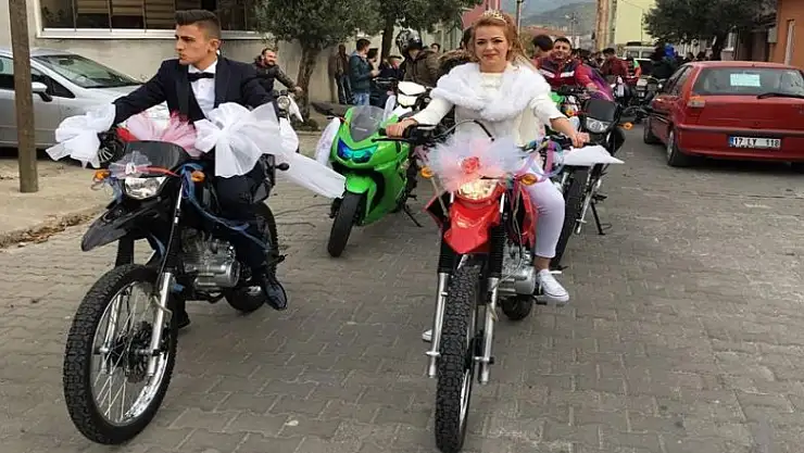 Balıkesir'in Susurluk ilçesinde, motosiklet tamircisi genç, kendisi gibi bu araç tutkunu müstakbel eşini almaya 60 motosikletli arkadaşı ile gitti.