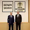 Konya Büyükşehir Belediyesi Taş Bina’da gerçekleşen ziyaretlerde ilk olarak Konya Valisi Vahdettin Özkan Başkan Altay’la bir araya geldi.