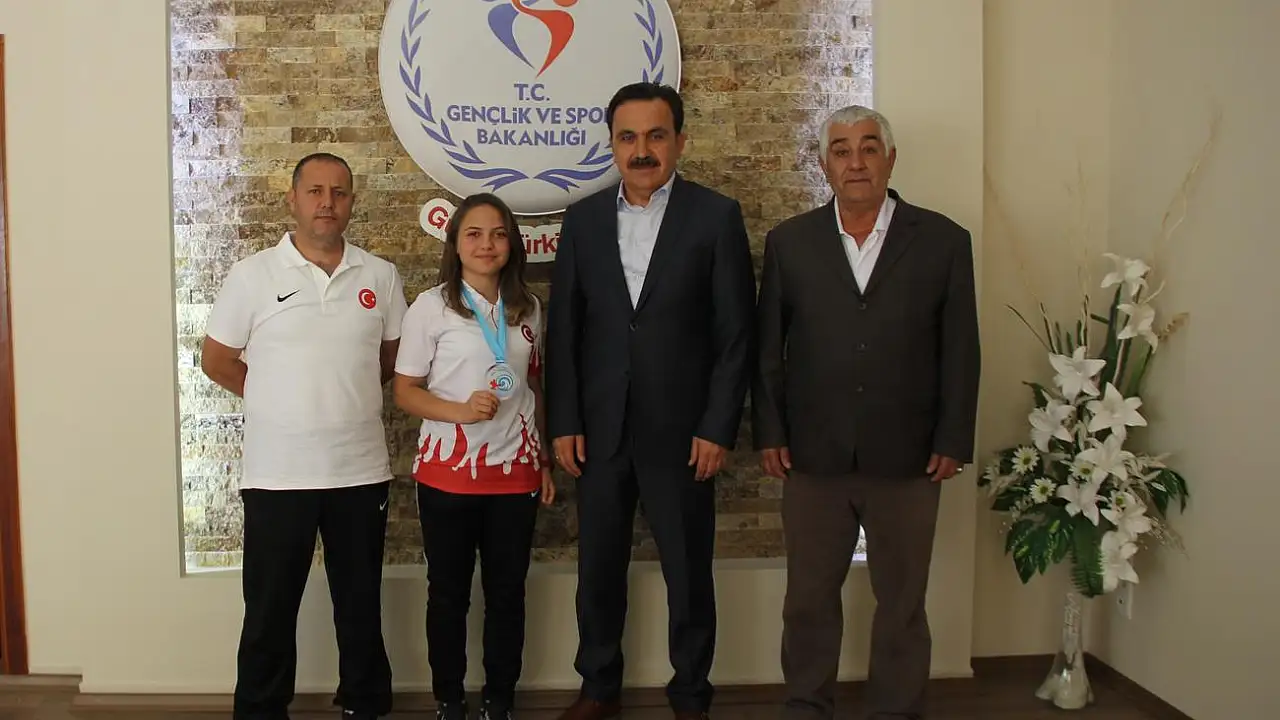 Dünya Plaj Tekvando Şampiyonası'nda Dünya 2.si olan Konyalı sporcu Nur Beyza Mingan, Konya Gençlik Hizmetleri ve Spor İl Müdürü Ömer Ersöz'ü ziyaret etti