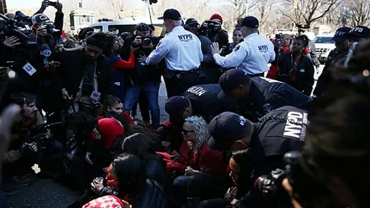ABD'nin New York kentinde Dünya Kadınlar Günü dolayısıyla düzenlenen ABD Başkanı Donald Trump karşıtı 'Kadınsız Bir Gün' gün temalı protestoda kadınlar gözaltına alındı.