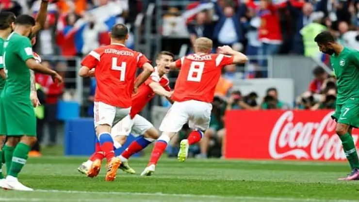 2018 FIFA Dünya Kupası'nın açılış maçında ev sahibi Rusya, Suudi Arabistan'ı 5-0 mağlup etti.
