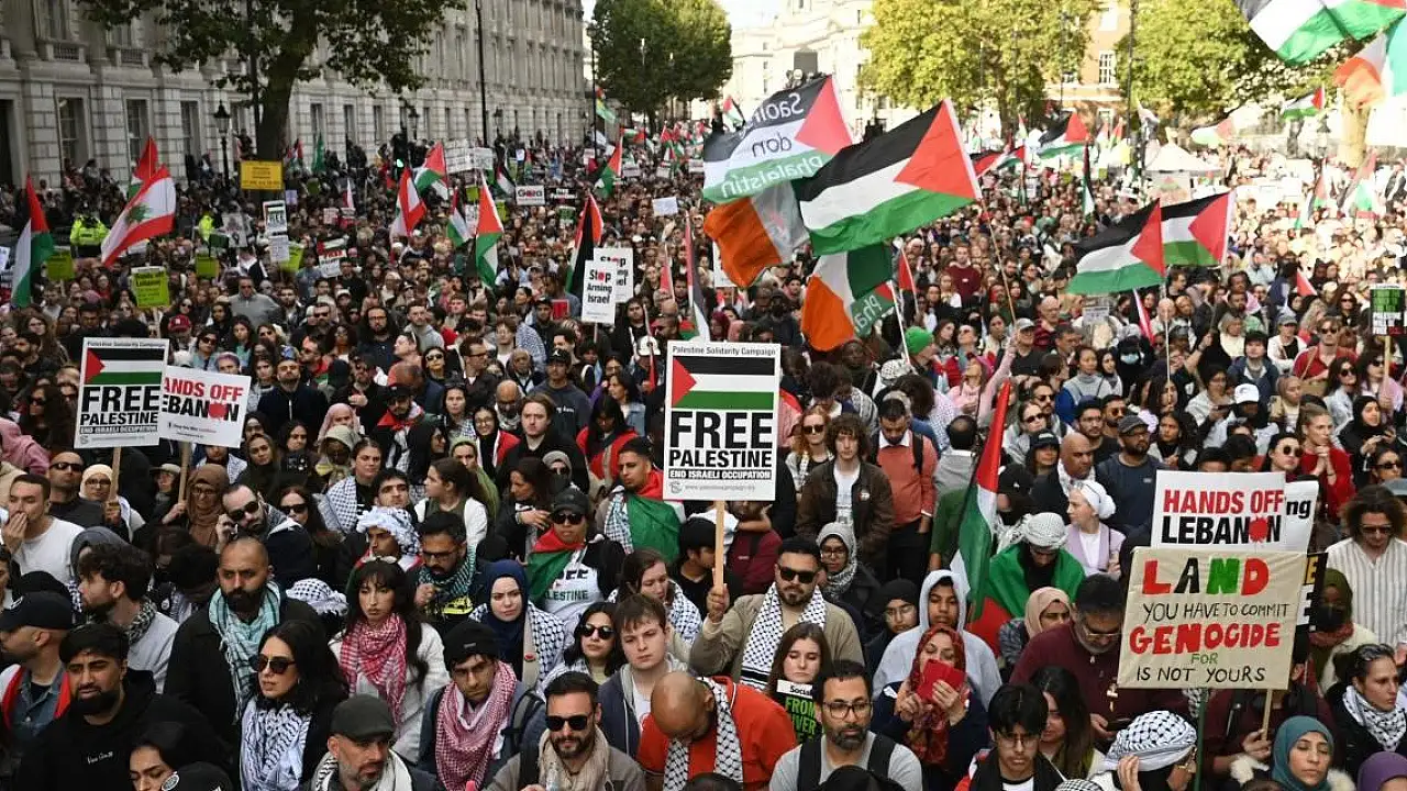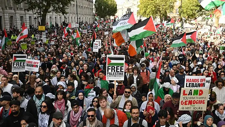 İngiltere'de yüz binlerce kişi İsrail'in Gazze saldırılarının birinci yılında Gazze'de ve Lübnan'da acil ateşkes ile İngiltere'nin İsrail'e silah satışını durdurma çağrısıyla yürüdü.