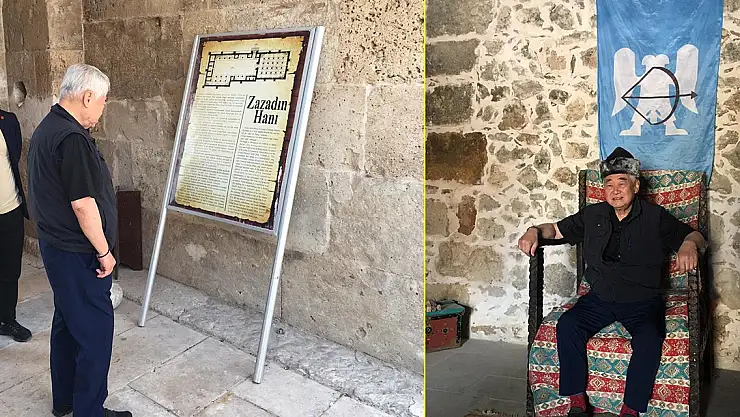 Selçuklu Börkü giyip Kılıç ve Balta ile hatıra fotoğrafı çektirdiler, Derviş Kostümü ile Derviş olup Dervişhane’de Tefekkür anlatıldı. Hanın Mimarı Emir Sadettin Köpeğin makamına oturup, makam odalarını gezdiler.