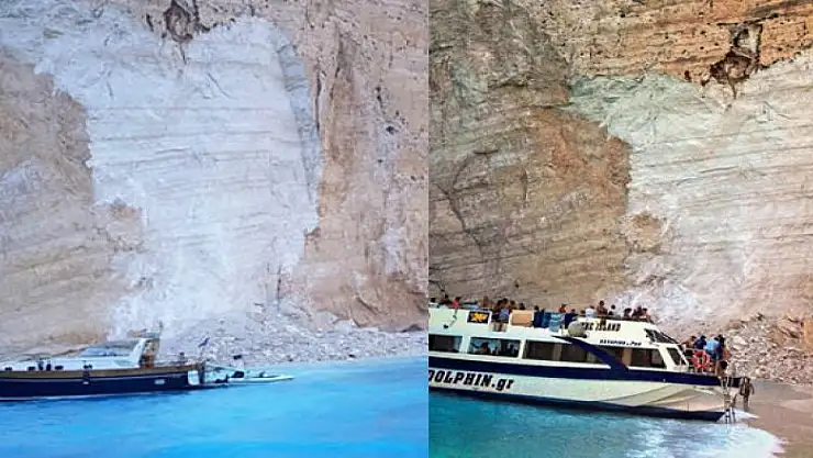 Plajın etrafını saran kayalıkta meydana gelen çökmenin fotoğraflarını Reuters haber ajansı servis etti. Karadan ulaşımın olmadığı Navagio, her yıl yüz binlerce yabancı turist tarafından ziyaret ediliyor.