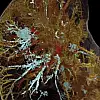 Yayımlanan fotoğrafta açık renkli damarların hava aralığı olduğu belirtilirken, kırmızı damarlar ise açık kan damarları olarak görülüyor. Taramada sarı renkte gösterilen damarlar ise Kovid-19 sebebiyle tıkanmış damarları açıkça gösteriyor.