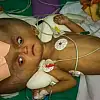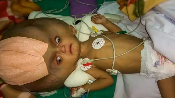 Nadir görülen bir hastalıktan dolayı dünyanın en büyük kafasına sahip olan 7 aylık bebeğin kafasından 3.7 litre sıvı alındı.
