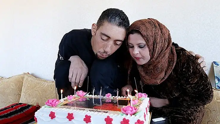 Mardin'de 2 metre 51 santimetre boyu ile "dünyanın en uzun boylu adamı" unvanını koruyan Sultan Kösen, geçen yıl hayatını birleştirdiği, Suriye asıllı Merve Dibo ile evlilik yıl dönümünü kutladı.
