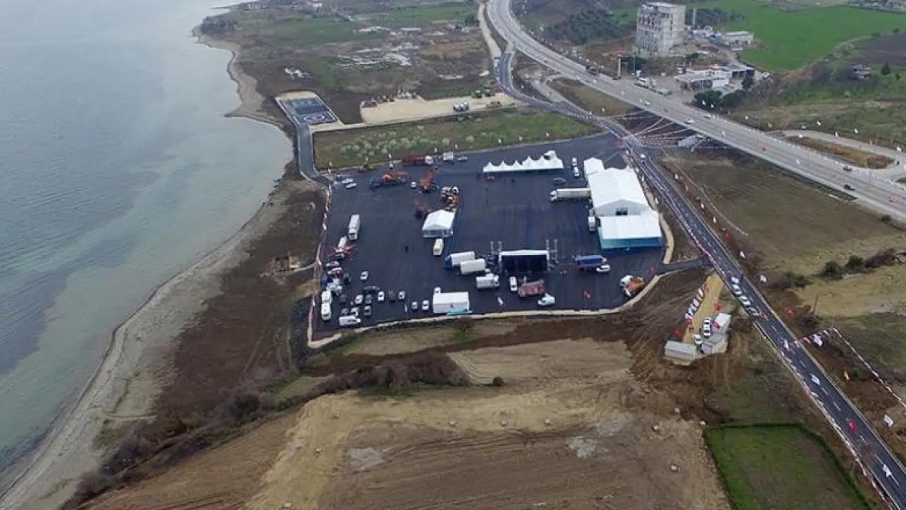 "Dünya çapında proje" olarak nitelendirilen, 3 geliş ve 3 gidiş olmak üzere toplam 6 şeritten oluşacak köprünün temelinin atılacağı 18 Mart Cumartesi günü yapılacak etkinlik için Lapseki ilçesindeki Şekerkaya mevkisinde tören alan oluşturuldu.