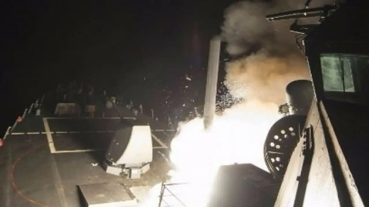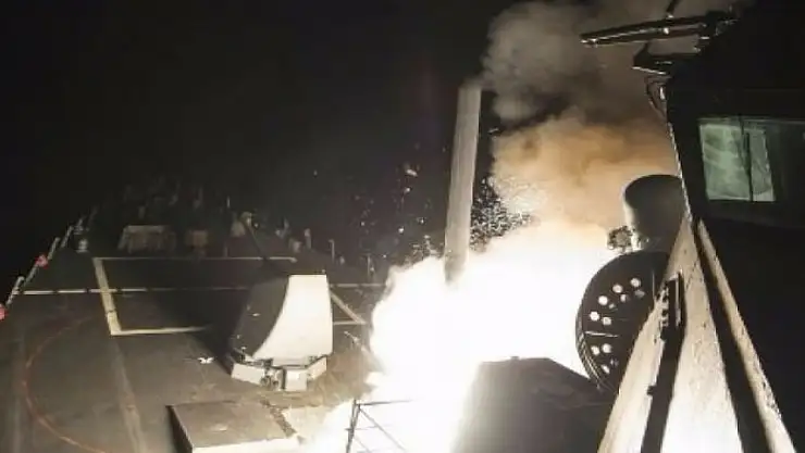 ABD Savunma Bakanlığı (Pentagon), Suriye rejimine ait Şayrat Hava Üssü'nü 59 Tomahawk füzesiyle vurduklarını açıkladı. Füze saldırısının Akdeniz'de konuşlandırılan bir ABD askeri gemisinden yapıldığı belirtilerek, kimyasal silah saldırısının düzenlendiği askeri üssün hedef alındığı bildirildi.