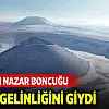 Dünyanın nazar boncuğu beyaz gelinliğini giydi