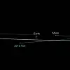 Dünya'nın güney ucunu teğet geçen göktaşının, yakın geçişinden 14 saat sonra Ay'ın 277 bin kilometre yakınından geçtiği kaydedildi.